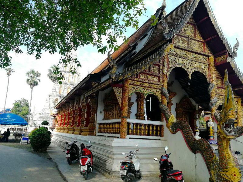 Самым известным чеди на территории древнего города является Ват Чеди Лиам (Wat Chedi Liam). Чеди заложена в 1287 году, то есть ей уже почти 8 столетий – солидный возраст. Чеди была построена королем Менграем в честь своей умершей жены. Архитектура чеди не совсем типична для северного Таиланда. Она пятиуровневая, выполненная в виде пирамиды. По сторонам чеди сделаны ниши, в которых располагаются статуи Будд.