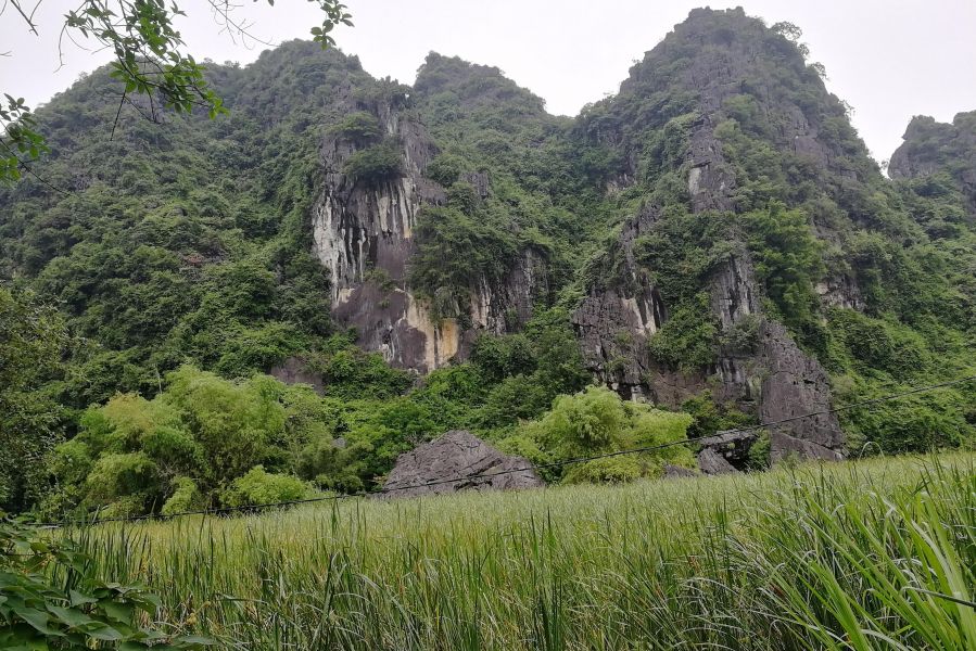 Я ехала в горный край, любоваться горными пейзажами и ждала, когда начнется горный серпантин. Но до прибытия оставалось уже менее получаса, а гор и серпантина все не было. Я уже решила, что мы сильно опаздываем. И вдруг неожиданно, среди ровной долины, вырос высокий куполообразный холм. А дальше другие – расположенные где близко друг к другу, где подальше. И тут мне стало понятно, почему Ниньбинь называют “Халонг на суше”. Там карстовые скалистые островки появлялись из моря, а здесь вырастали из ровной поверхности земли.