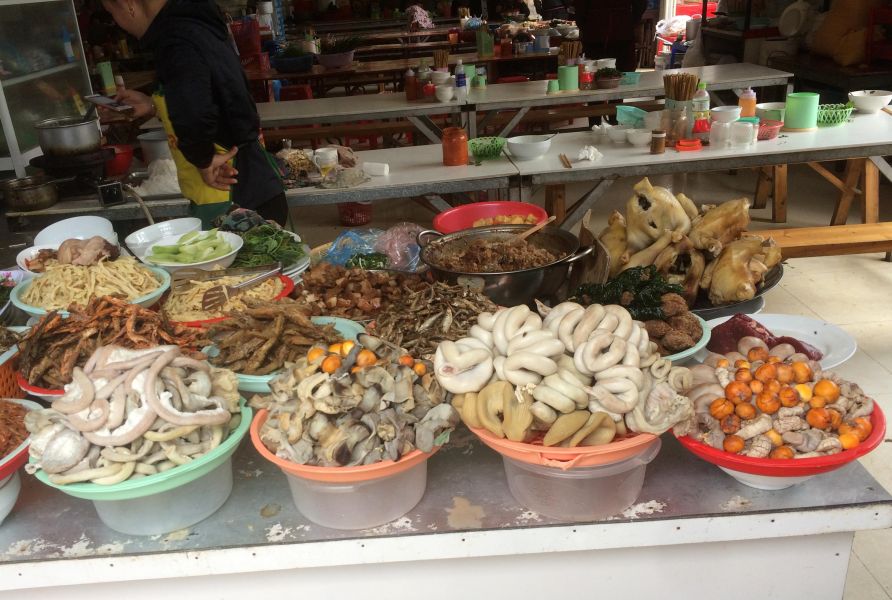 Из-за прохладной температуры здесь больше едят мяса, поэтому на рынке активно продают субпродукты.