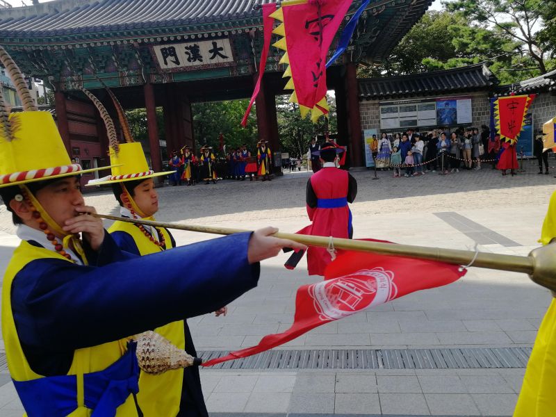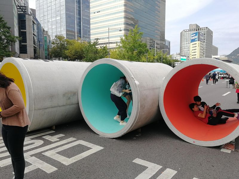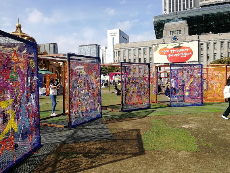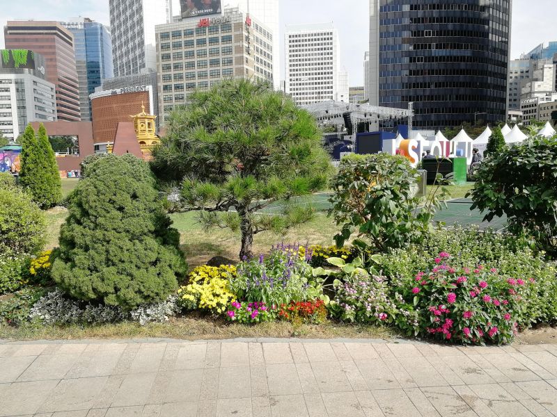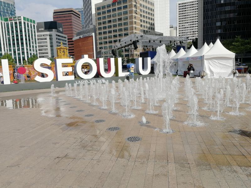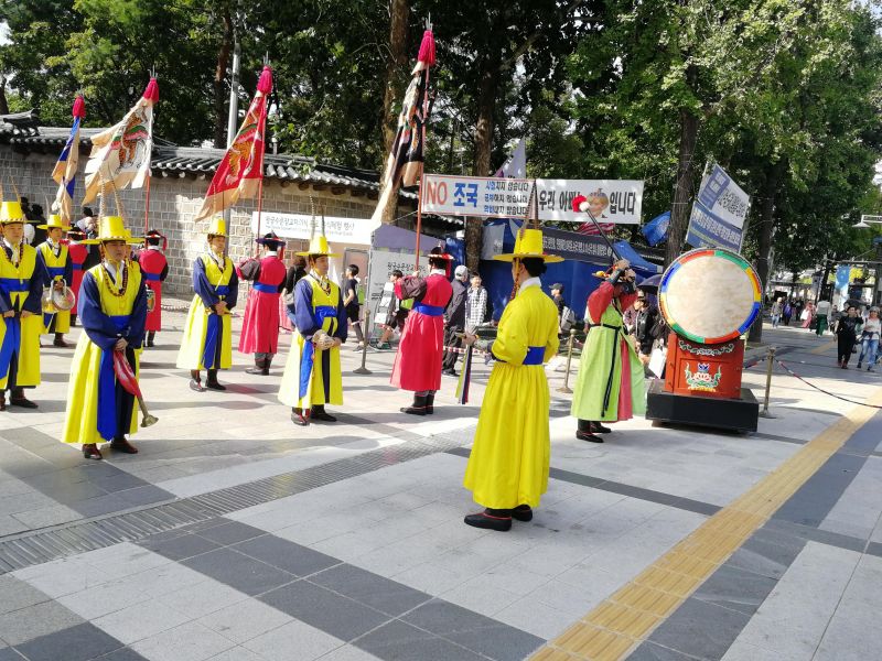 От ручья Чхонгечхон я вышла к площади Чхонге. День был субботний, погода хорошая – начало октября, поэтому большое количество народа на площади меня сначала не удивило. А затем начала замечать что-то не совсем обычное.