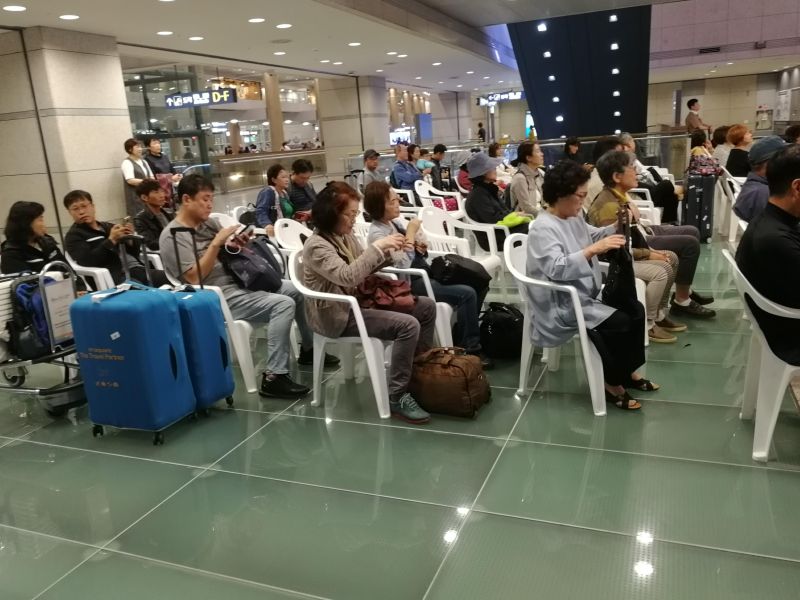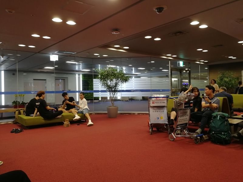 В зале вылета стоят не только мягкие удобные кресла, но и что-то типа татами. На них кучкуется молодежь, играют в карты.