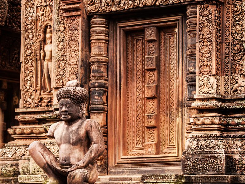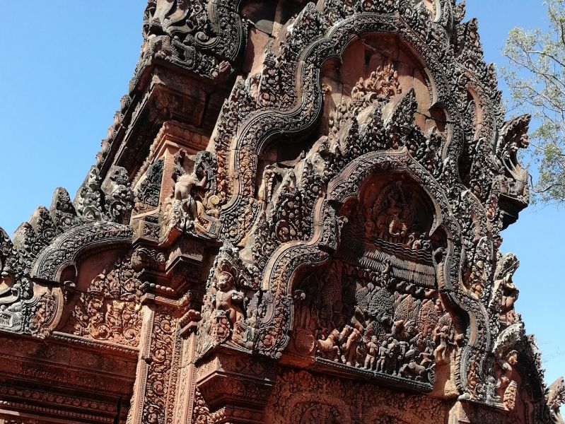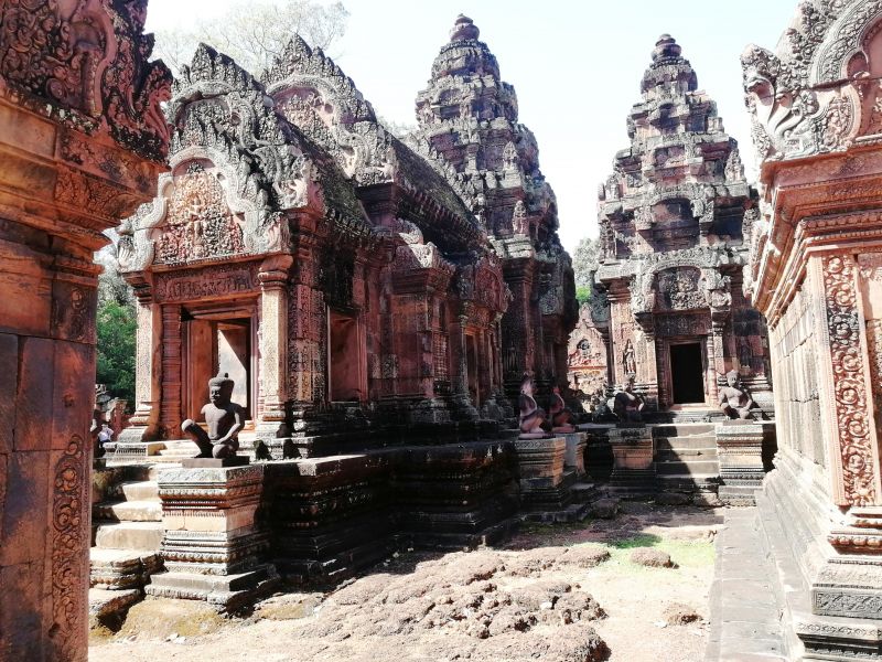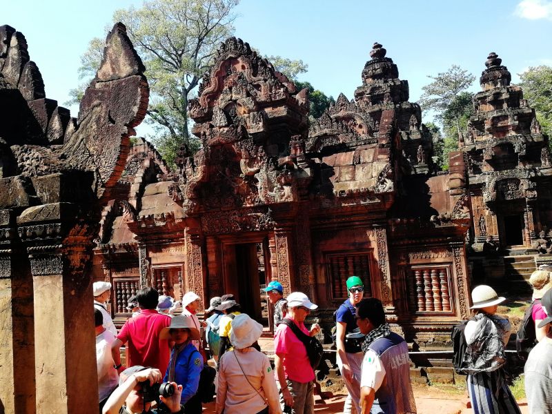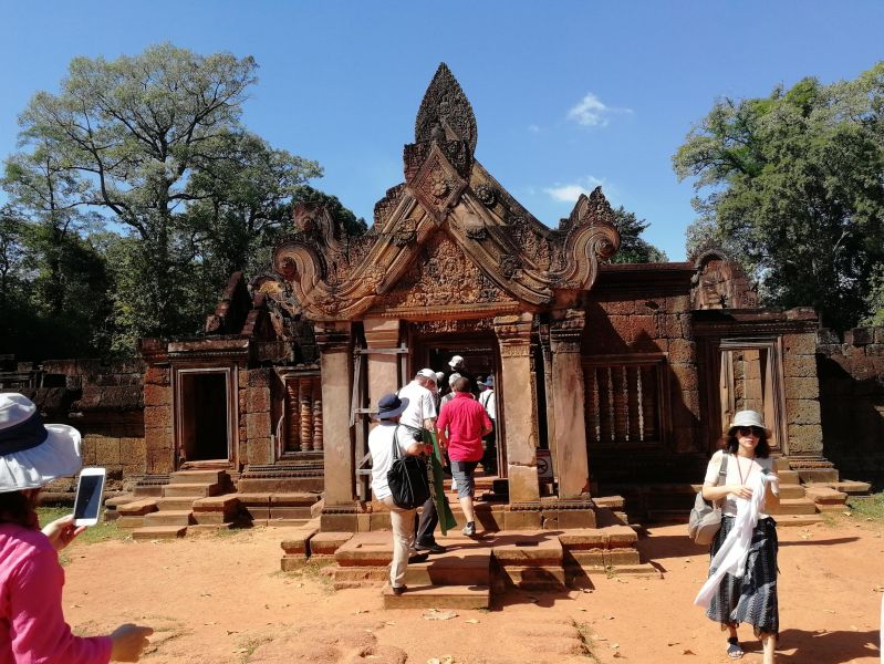 По сравнению с величественными и грандиозными храмами Ангкора храм Бантей-Срей (Banteay Srei) кажется совсем миниатюрным и любители больших форм могут быть разочарованы. Но между тем этот храм считается одним из шедевров кхмерской архитектуры и выделяется на фоне остальных храмов Ангкора не только размерами, но и своей изящностью и использованным для строительства материалом.
