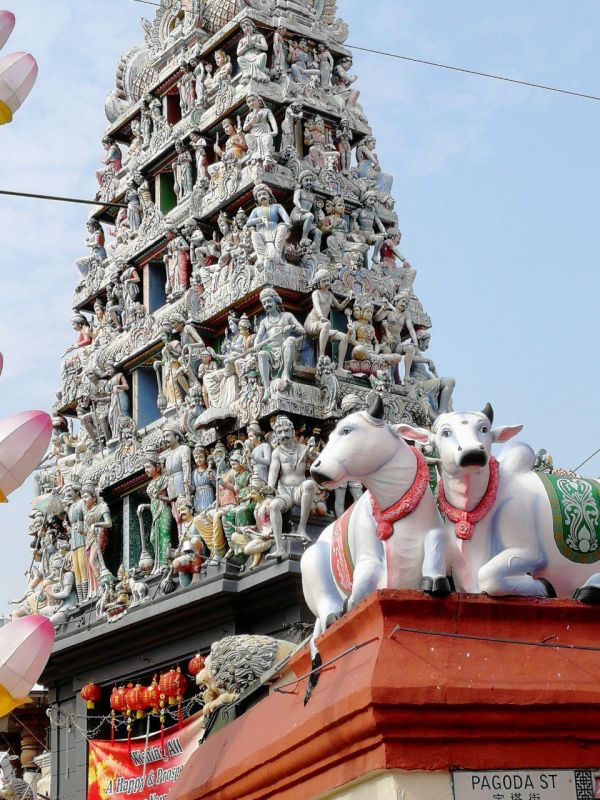 Еще один храм - Шри Мариамман. Это старейший индуистский храм, украшенный многочисленными разноцветными скульптурами индийских богов.