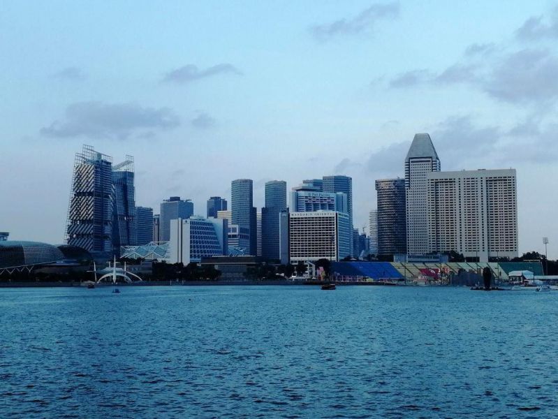 Самой знаменитой достопримечательностью залива, да и всего Сингапура, является отель Marina Bay Sands, но я свой променад вокруг залива начала с противоположного берега, обходя его против часовой стрелки.