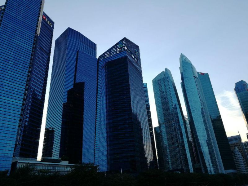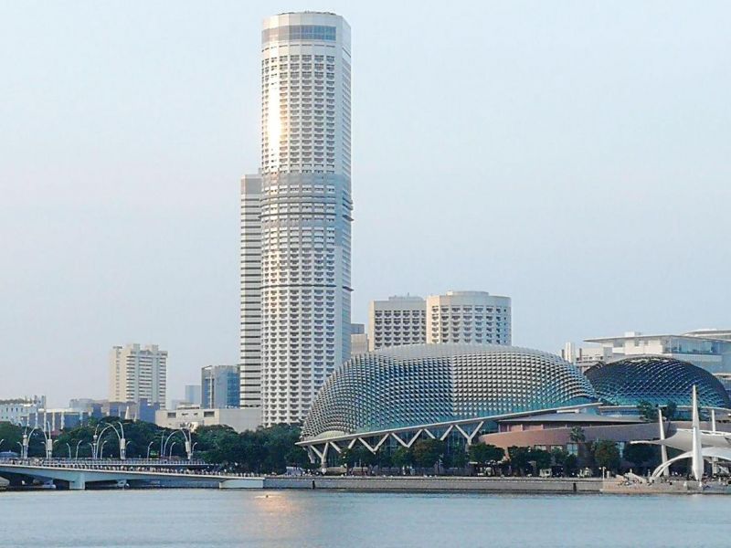 Далее, следуя по часовой стрелке, виден деловой центр Сингапура, состоящий из небоскребов разной архитектуры. Находятся здесь офисные здания и жилые кондо, магазины и рестораны. Здесь же находится центр ночной жизни Сингапура - комплекс «Уан-Фуллертон» с обилием ресторанов и танцевальных клубов. Очень красивый комплекс, похожий на какой-то внеземной город.