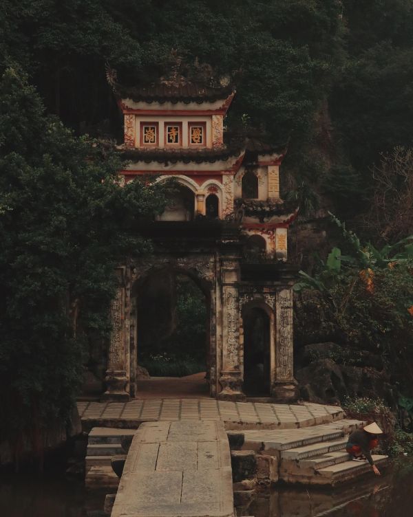 Пагода Бич Донг или Грот зеленой жемчужины. Это один из старейших храмов Вьетнама. Трёхуровневый комплекс, вырезанный прямо в карстовой скале.