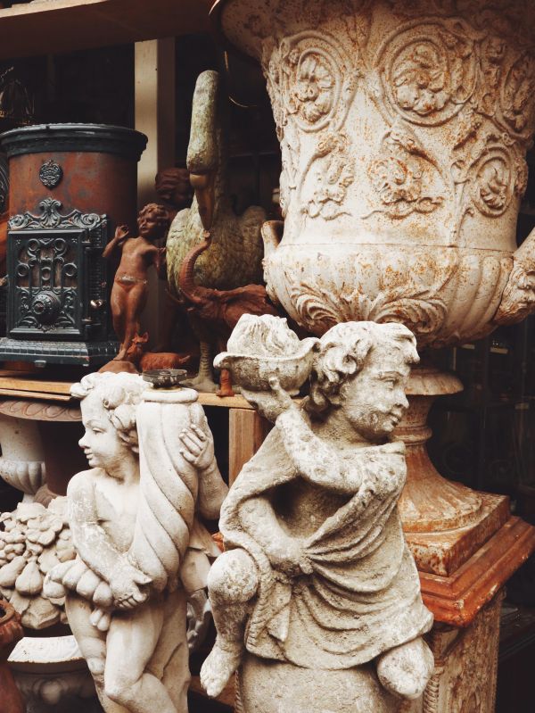 Каждый раз, приезжая в Париж, я прихожу в гости к ним... Ржавым статуям на броканте, блошиный рынок, в место, где собраны экземпляры старинных фонтанов, памятников, огромных железных коней в натуральную величину. Это место, которое дышит историей. Некоторые живут там много лет, никому ненужные, давно превратившиеся в музейные экспонаты. Вот уже который год рада здороваться с журавлём и убирать паутину с носа большого чугунного пса.