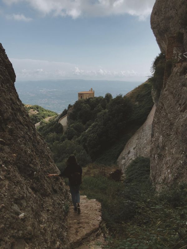 А это я сижу на вершине одной из скал хребта Монсеррат, что в переводе означает «зубчатая гора». Когда-то эта местность была дном моря, затем, в результате вулканической деятельности, поднялась на поверхность. Есть легенда, что горы причудливой формы вылепили ангелы, можно разглядеть верблюда, голову слона и другие фигуры. Подниматься пешком от собора на это место 1,5 часа без остановок или платно на канатке. Маршрут достаточно трудный, зато вокруг потрясающие виды. Эта местность обязательна к посещению.