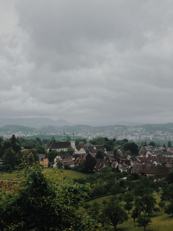 Вид на Арлесхайм со смотровой площадки замка Фордере Бирсек. Это швейцарская коммуна. численность населения которой почти 9000 человек. Замок Бирсек, тропы Эрмитажа ведут как раз к нему, на каменистую возвышенность, откуда открывается завораживающий вид.