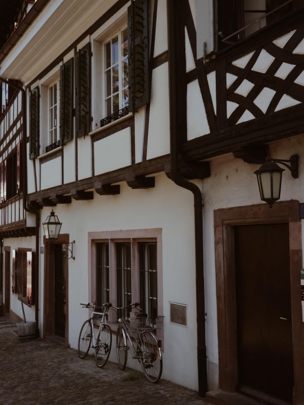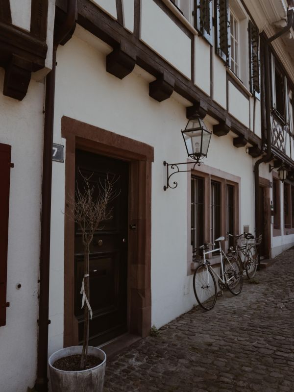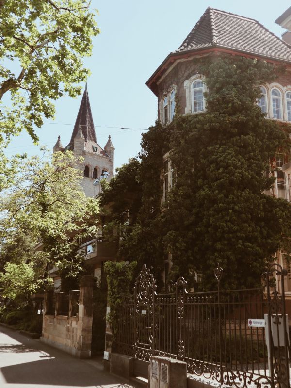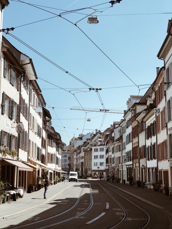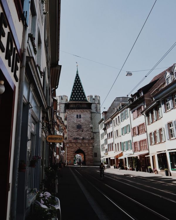 В таких городках как Базель, много людей передвигаются на велосипедах. Существуют огромные стоянки для двухколесных друзей. У каждого своё место. Не могу сказать, что много машин. Зато есть красивые современные зеленые трамваи и автобусы . Ох, эта разница веков там особенно заметна! На предыдущем фото города видно рельсы, представьте там трамвай!
