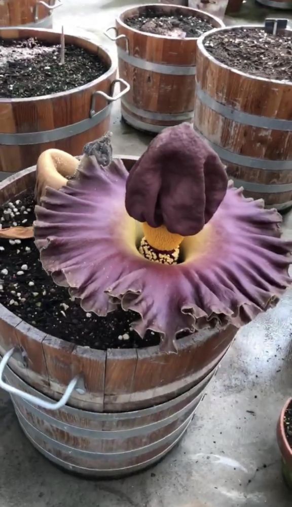 Но вишенкой на торте считается его запах! Цветочек пахнет тухлым мясом! За это его прозвали трупным цветком. Полное название Аморфофаллус титанический.