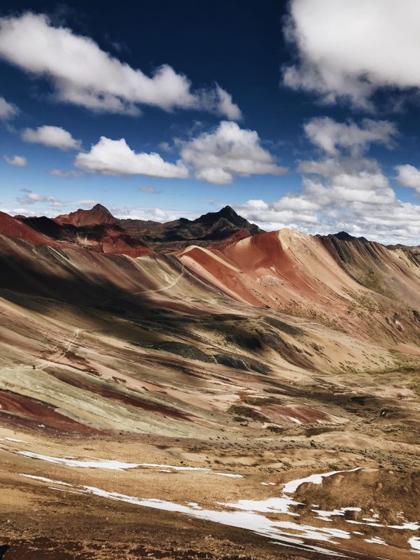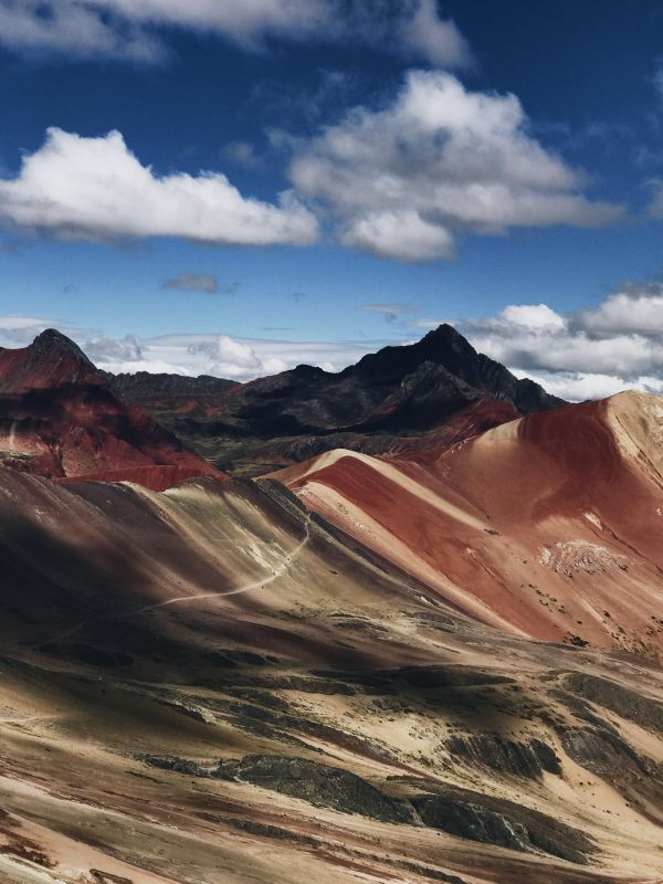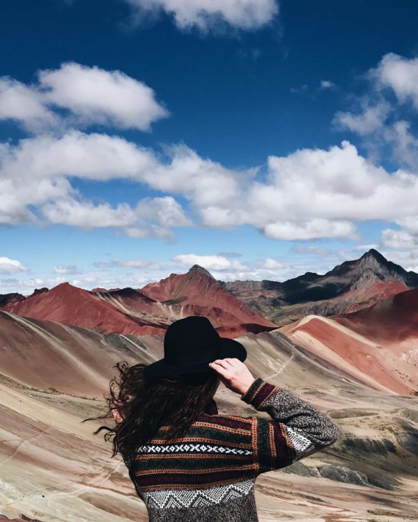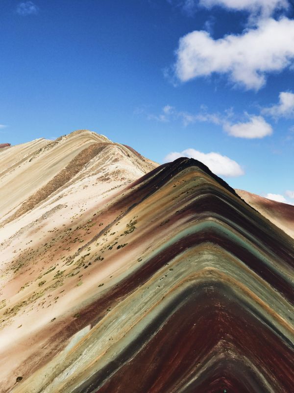Вот они-радужные горы Перу Завораживающее зрелище! Тени, падающие от облаков быстро плывут, подчеркивая каждый оттенок гор. Виникунка (Vinicunca) - так они называются на языке индейцев кечуа, что буквально означает "горы цвета радуги".Цветные слои этих гор сформировались миллионы лет назад из красного песчаника, который под воздействием климатических условий, подземных вод и примесей минералов окрасился в желтый, зеленый, белый и другие цвета. Взяла с собой горсточку бирюзового песочка)!
