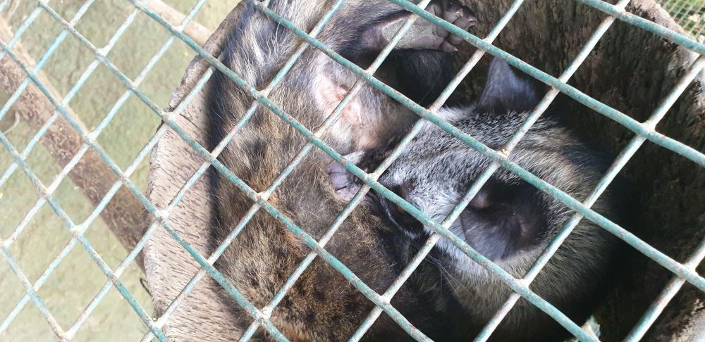 Однако мусанги на зверофермах содержатся в клетках и лишены возможности свободно передвигаться по веткам в поисках лучших кофейных ягод и, соответственно, не могут выбирать самые спелые ягоды и вынуждены есть то, чем их кормит персонал.