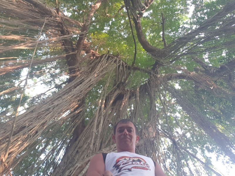В центре парка расположен огромный древний баньян от которого идут дорожки в разные части этого волшебного леса. Очень красиво смотрятся корни баньянов свисающие с высоты. Так же в них порой происходит движение обезьян. Вообще под ними стоит ходить аккуратнее, как над пролетающей стаей голубей. Да, обосрали прямо сверху :) Рюкзачок моей благоверной слегка пострадал. Видимо к деньгам, ждём, но пока не сработало :)