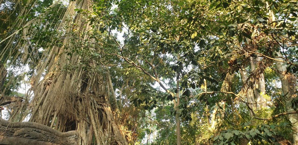 Лес напоминает мир, сошедший со страниц сказки. Так и кажется, что если пройди по дорожке немного вглубь, то попадешь к лесным эльфам, но попадёшь в дом вечного сна - крематорий. Он расположен около храма Пура Праджапати. Кладбище, прилегающее к этому храму, принимает тела умерших для временного захоронения, пока они ожидают массовую церемонию кремации, проводимую один раз в пять лет. Массовые сожжения эксгумированных остатков - Они верят, что только так достигнут реинкарнации.