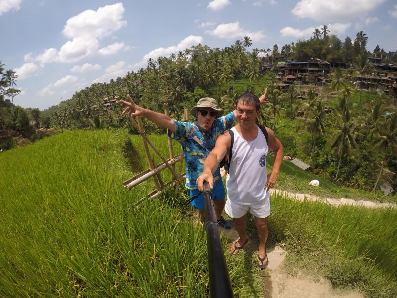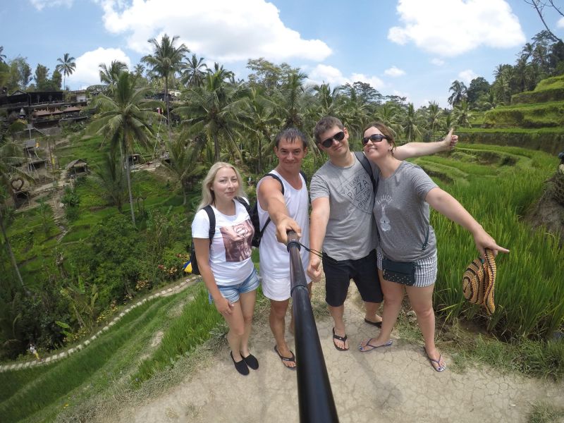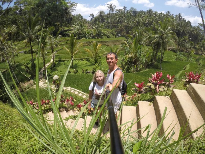 - Когда мы ходили по дорожкам среди рисовых террас некоторые из них были перекрыты палкой и рядом сидел местный, который просил денег за вход, естественно незаконно. Даже если вы скажете, что вы давали на входе пожертвование - он ответит, что это неважно. Просто говорите, что у вас карта. Некоторые пускают. Тем, которые не пускают и всё равно требуют нал, нужно мягко намякнуть, что впервые сталкиваетесь с таким недружелюбным отношением в таком прекрасном месте как Бали и обязательно будете об этом рассказывать в своем видеоблоге или инсте. У нас это срабатывало всегда, ибо этот остров живёт сейчас в основном туризмом. Лучше собирать с туристов деньги, чем выращивать рис, молодёжь на Бали это давно понимает.