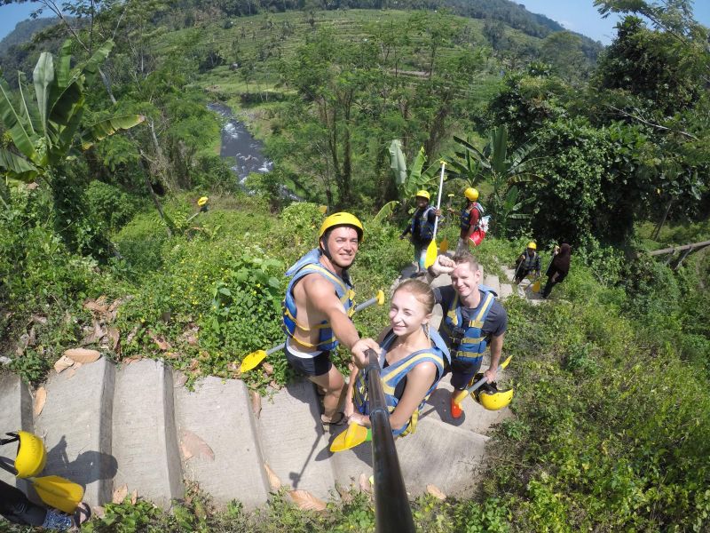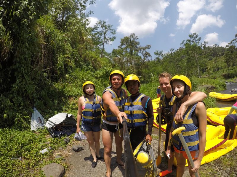 Итак, раннее утро и микроавтобус несёт нас по извилистым лесным дорогам в горы Бали - навстречу речным приключениям. В автобусе формируется группа, которую собирают по всем локациям. Поскольку мы ехали компанией из пяти человек с нами ехала всего одна пара и по счастливой случайности они были молодые, весёлые и русские. Мы быстро подружились. В горной части острова есть несколько полноводных рек, по которым можно спуститься на лодке. Мы выбрали Телагу, т.к. уровень сложности обещали средний, но не требующий долгой подготовки. Хотелось бы подметить, что опыт сплавов у меня уже был, о чём я обязательно напишу в своей серии постов GoPro Travel Activity.