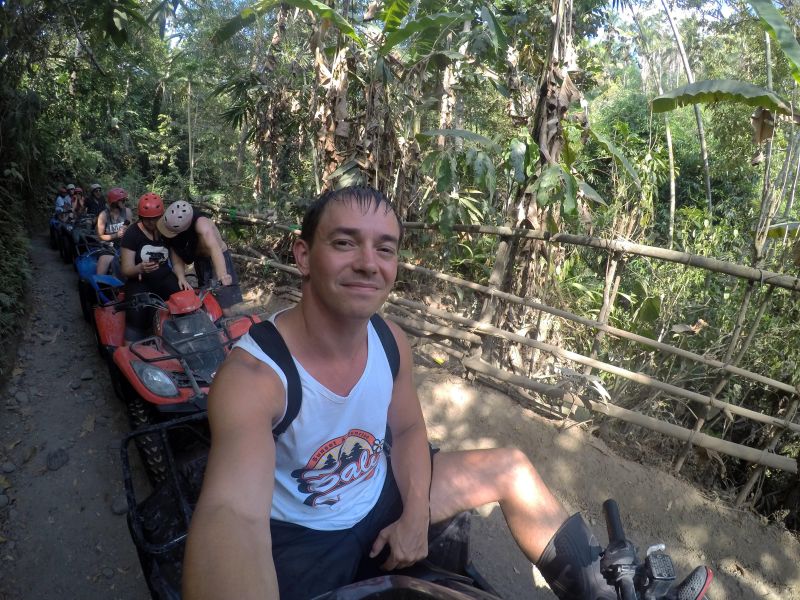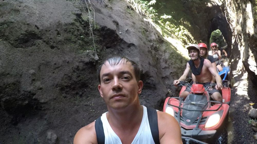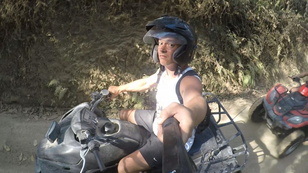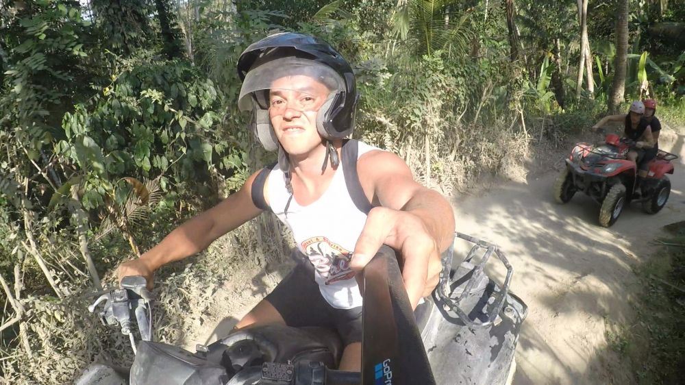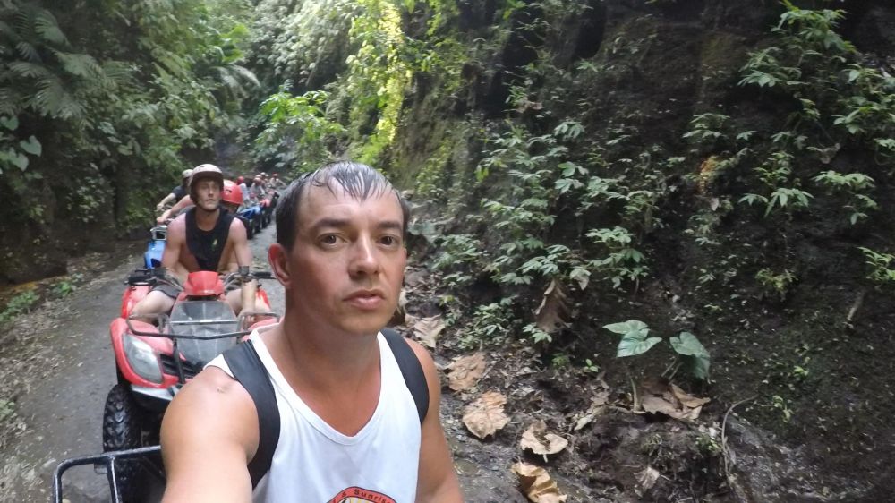 Время пролетело на одном дыхании и с улыбкой на лице. Порой захватывало дыхание от резких поворотов, подъёмов и спусков. Поскольку я ехал прямо за инструктором у меня была возможность разогнаться, иногда он выпускал меня вперед, т.к. видел, что опыт у меня есть. Вот только он не знал, что я первый раз сидел на квадроцикле, а опыт вождения мототехники - десять дней скутера на Бали :) О том, как я первый раз сел на скутер на Бали, я писал в своём посте Транспорт Свободы