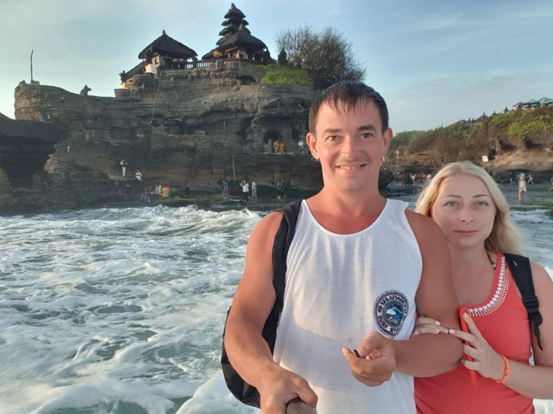 Во всем мире нет храмов, похожих на храм Танах Лот. Отзывы в интернете гласили, что утром когда на сушу наступает прилив, вода подходит к нему в плотную, и создается впечатление, что еще немного и океан поглотит его. В это время к храму не подойти, любоваться можно только издалека, но вот вечером, когда отлив и вода уходит обратно, к нему можно подойти и поближе, рассмотреть все детали храма. Поэтому ехать нужно вечером. Как мы и сделали.