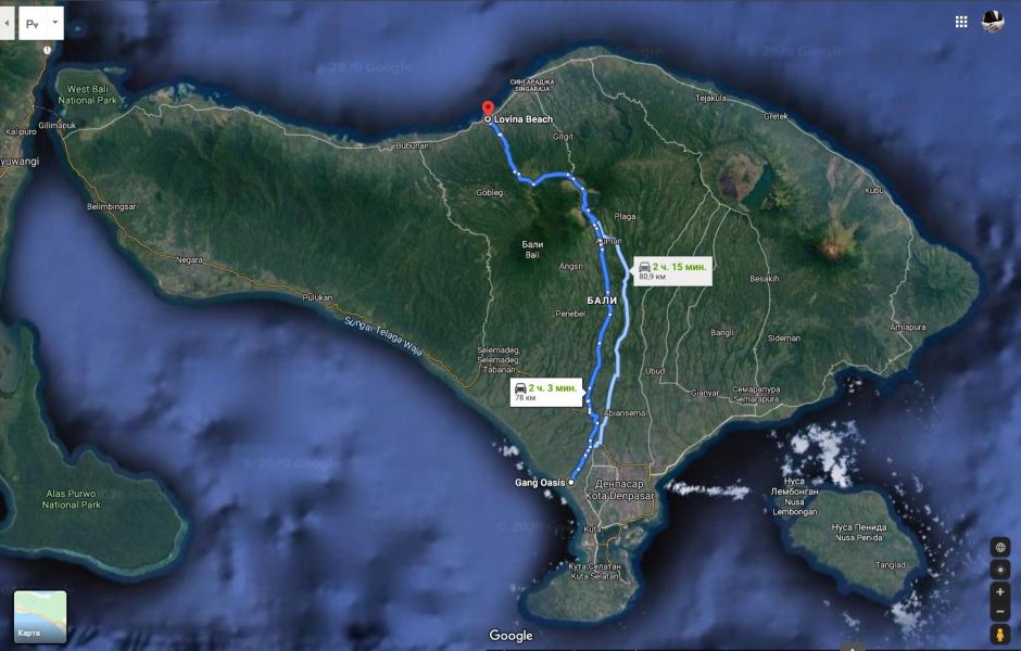Предпоследний день на Бали мы решили посвятить только своему личному отдыху. Кто-то поехал за сувенирами, кто-то просто трэчить на скутере по живописным местам, ну а мы решили во что бы то ни стало посетить далёкий север Бали, а точнее пляж Ловина (Lovina beach) с черным, вулканическим песком. Нужно было пересечь весь остров по прямой – целое приключение – путешествие в путешествии! Навигатор выдал чуть больше двух часов в пути, а дорога обещала быть лёгкой и провинциальной, но в то же время очень красивой. На пути не было туристических городов – было пересечение провинций райского острова! Восемьдесят километров красоты, три часа неспешной прогулки с остановками и любованием природой Бали.