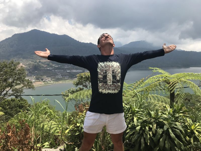 Мы по-прежнему ехали не торопясь, по пути встретили прекрасный магазин с отличными футболками. За все две недели на Бали мне не удалось встретить столько футболок, которые бы мне нравились и при этом имели адекватную цену. Я купил сразу 4 штуки, качество было отличное и цена великолепная, что-то около 200 руб/шт, когда ближе к курортным городам цена начинается от 600 и качество как у половой тряпки. Я забил багажник скутера новой одеждой, переоделся в обновку и мы двинулись дальше. Каково же было моё удивление, когда наша дорога вдруг резко устремилась в гору. Я остановился, чтобы более детально рассмотреть карту и понял, что за час мы приблизились к конечной точке лишь на четверть.