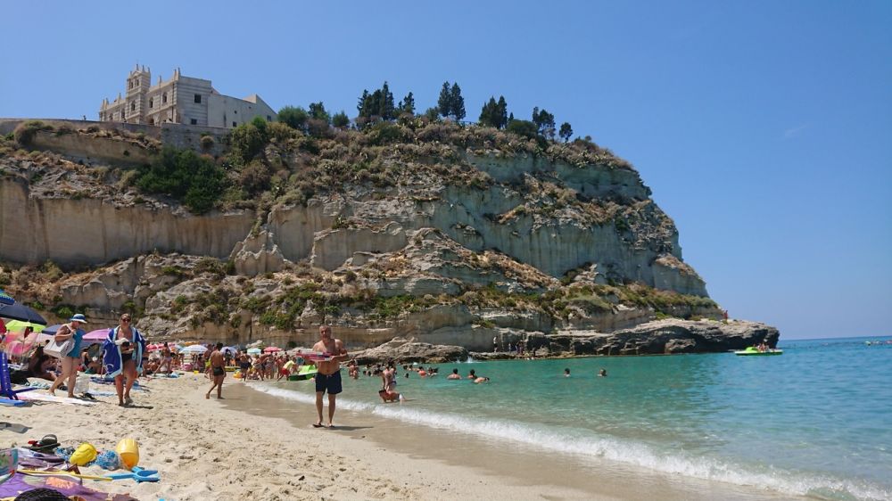 Затем последовало возвращение в Калабрию, но уже в город Тропея. Внимание он приковывает в-основном белоснежным пляжем и безупречно голубой водой.
