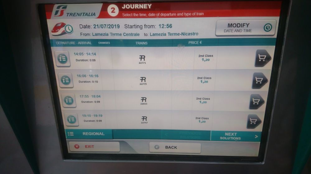1.Купить билет Ламеция-Терме Централе до Таормина-Джардини.