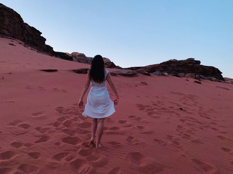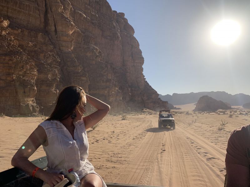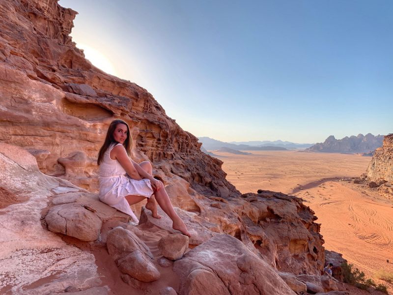 Уже с первого дня, я была безумно рада выбором места для проведения майских праздников. Чистые пляжи, тёплое море, очень спокойно, много свободных лежаков, красивые пирсы( и сотни фотографий на них). Вечером мы отправились в агенство за экскурсиями, четко решив что мы обязаны встретить закат в пустыне( они на востоке особенно манящие). Вышли мы с двумя экскурсиями : Пустыня Вади Рам( 30 $) и Старинный город Петра( цена которой 100 $, самая дорогая экскурсия, но того стоящая).Утром нас забрал автобус и мы погнали покорят пустыню.