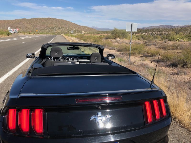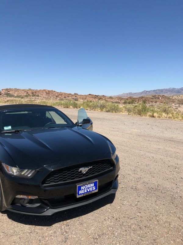 Я решил опустить крышу, не смотря на жару, и осуществить давнюю мечту. Прокатиться по американской пустыне на кабриолете.