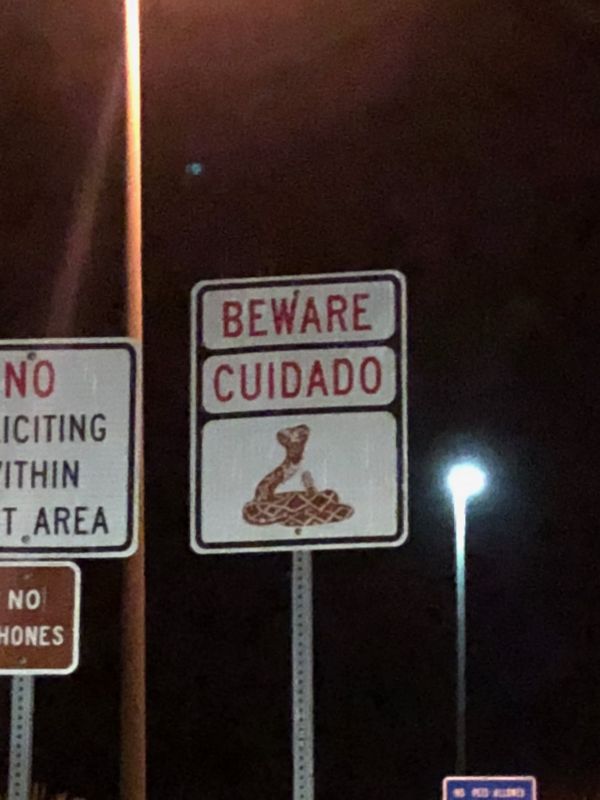 В итоге я нашел ночлег мотеле почти на границе с Техасом за 40 долларов. Если вздумаете прогуляться вечерком по окрестностям имейте ввиду - тут много гремучих змей. Знаки как бы намекают...