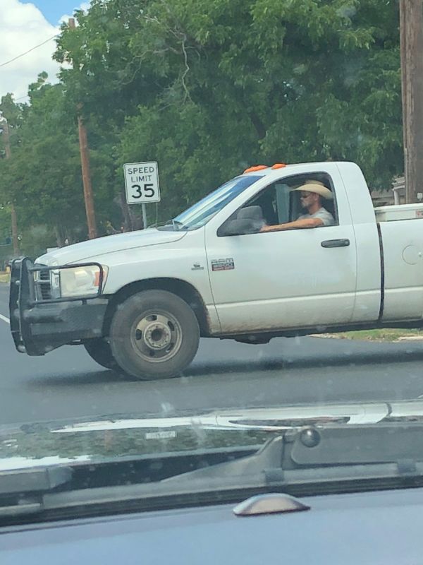 Единственный ковбой, которого я встретил в штате ковбоев. А может это просто работяга в шляпе едет по делам, так и не понял...