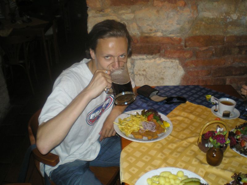Ели кнедлики ( блинчики из хлеба), «зеленину» (овощи), «зверенину» (мясо), пили конечно пиво, благо транспортное средство, которое доставило нас прямиком к родине Моцарта, на обратном пути вышло из строя в силу нашей излишней помощи пешим попутчикам. Все время в дороге Агнежка и Милош, говорили на чешском языке, что совсем не странно, так как мои чешские друзья были коренными пражанинами.
