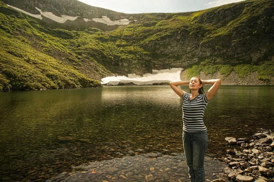 Всегда хотела побывать в Исландии, сделать фоточки в красивом платье на фоне льдов и горных озер. Тут, конечно, не Исландия, но все-таки вот тебе льды, а вот и горное озеро. А рядом – целое поле оранжевых жарков! Все 33 удовольствия!