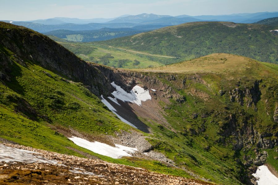 Возвращаться обратно или искать тропу не хотелось. Мы выбрались из цепких объятий кустарника, взяли чуть левее по склону и не прогадали, т.к. вскоре вышли наконец к третьему озеру.
