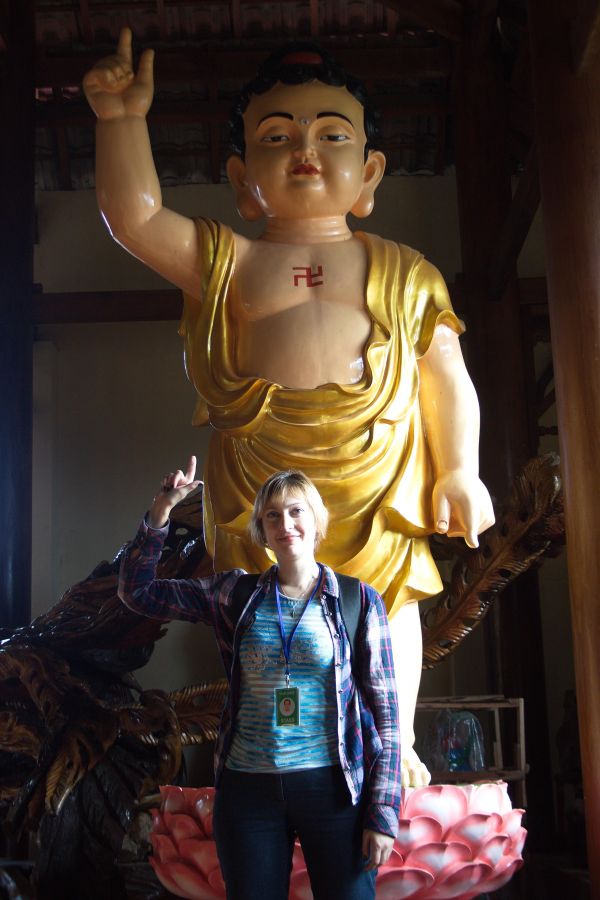 Кстати, свастика во Вьетнаме не имеет ничего общего с нацизмом и закручивается в другую сторону.