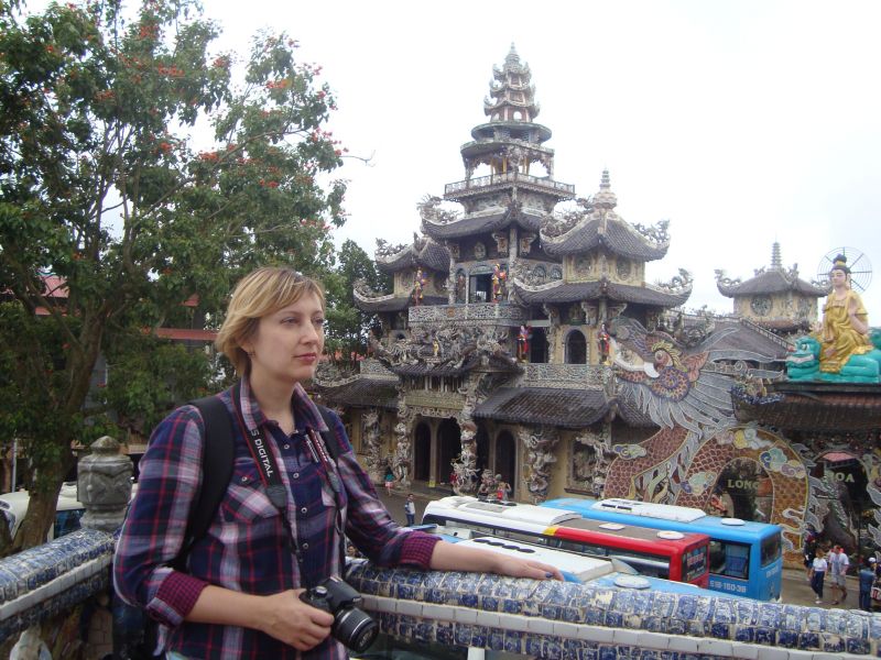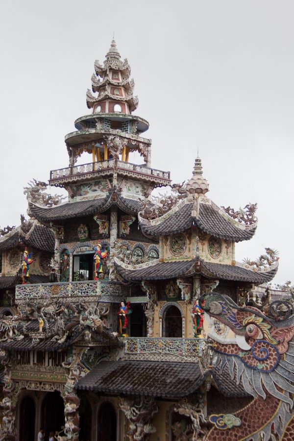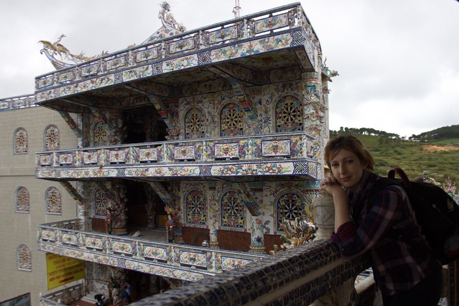 Первой точкой нашего маршрута была Пагода Линь Фуок, построенная по принципу мозаики из осколков стекла и керамики.