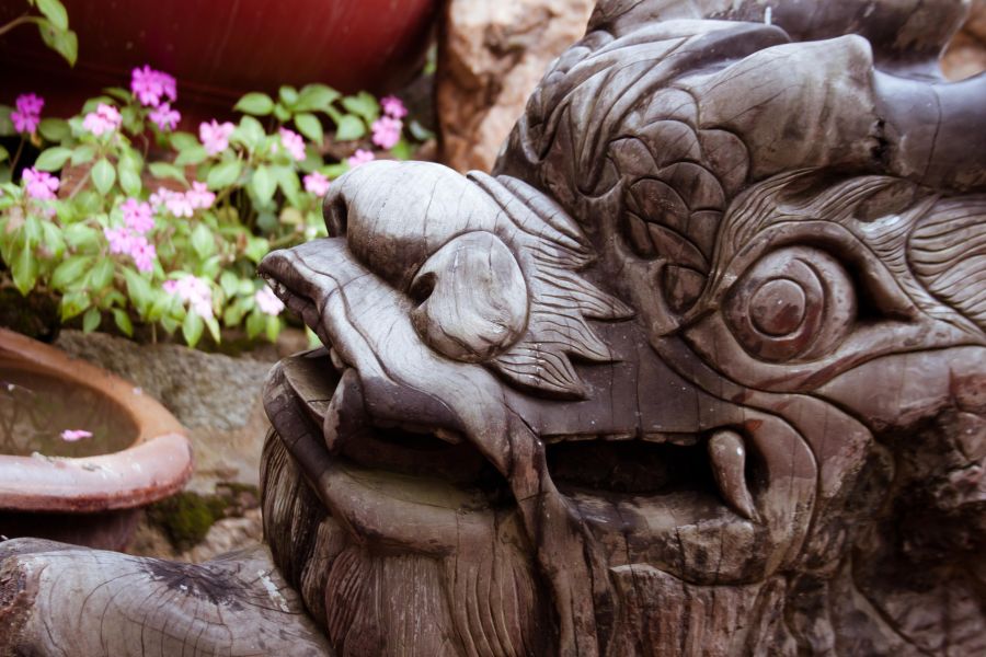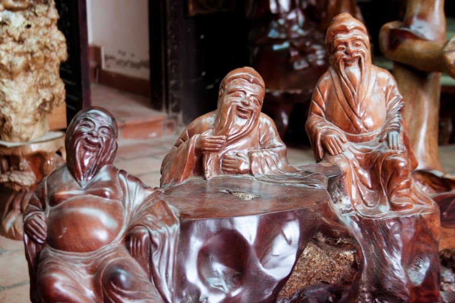 Здешние монахи искусно обрабатывают дерево и камень и делают из них замечательные фигурки. Посмотреть их можно тут же, при храме.