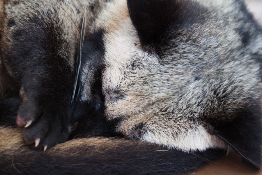 Заодно я погладила живность, похожую на чернобурую лисицу. Люди ей надоели настолько, что она уже не реагировала, просто свернулась клубочком.