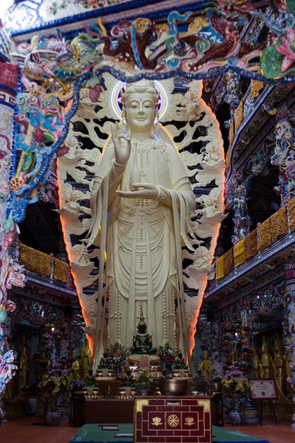 Справа от пагоды – высоченная статуя богини милосердия Гуаньинь. Когда нам сказали, что составлена она из маленьких цветочков, я поначалу не поверила, настолько это кажется невероятным.
