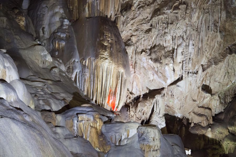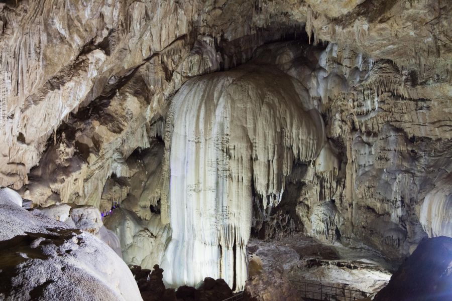 Когда приветственная речь экскурсовода закончилась, вся толпа двинулась по узкой оборудованной дорожке, слушая рассказы о пещере и рассматривая волшебные каскады сталактитов и натёчки.