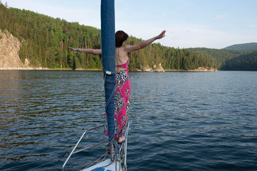 Случилась у меня на прошлой неделе прогулка на яхте по Красноярскому водохранилищу.