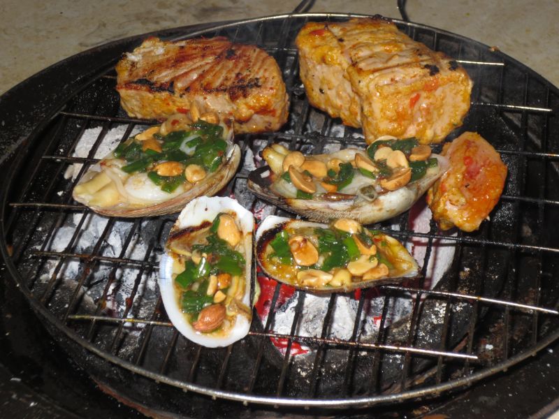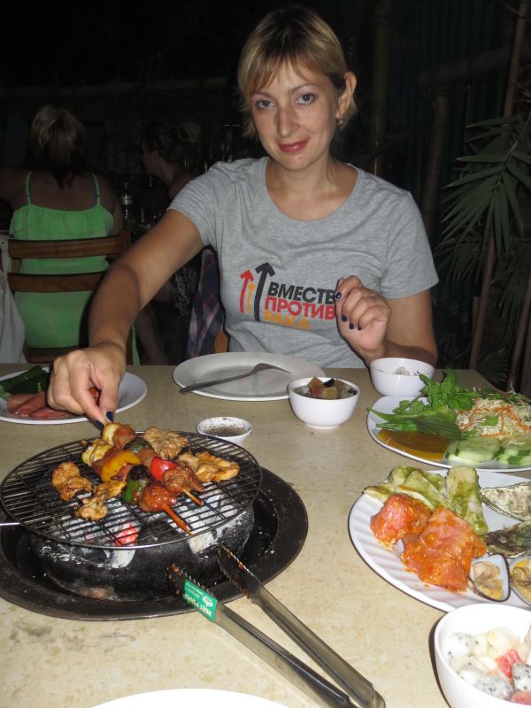 Зато в избытке был приготовленный рис, десерты и овощи, которые, кстати, можно было самим приготовить на гриле вместе с мяском.
