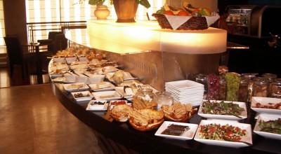 Все продукты подаются минимум 6-8 видов - сыры, рыба, десерты, и главное, что было несколько видов выпечки без сахара и глютена.