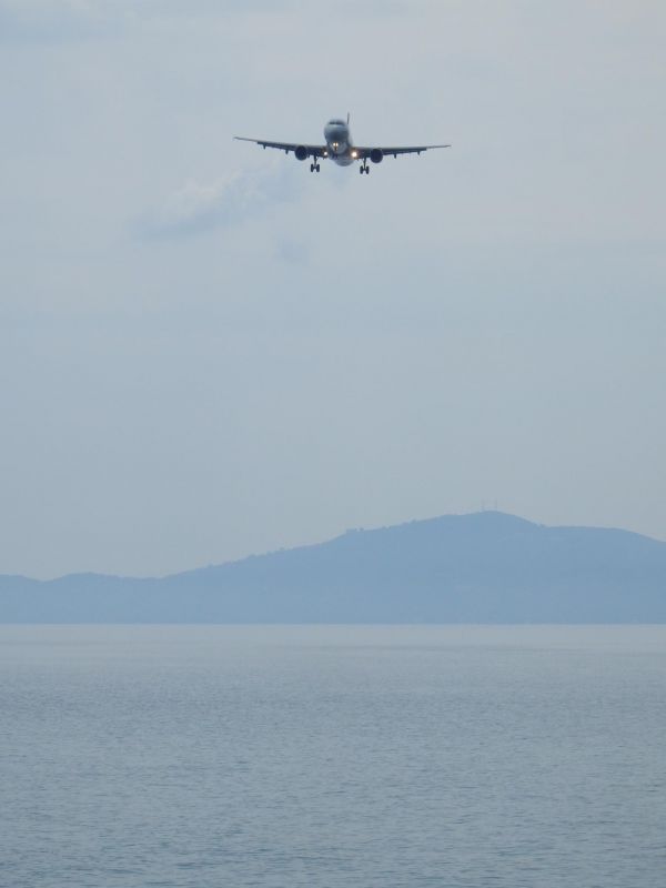 А после…а после, спустя какое то время, находясь на отдыхе многие туристы (в том числе и ваша покорная слуга) грезят желанием посмотреть со стороны на это чудо посадки. И места, я вам скажу, даже для этого фактически предусмотрены (не нужно пробираться куда-то инкогнито). Между двух высоких скалистых берегов на уровне моря есть «пешеходная тропа» (бетонный пирс), по всей видимости. также насыпная, в нормальном, обычном понимании и представлении она бы называлась понтонным мостом (возможно, так оно и есть). Вообщем с этой точки открывается пожалуй самый экстремальный наблюдательный пункт :-) также многие туристы арендуют небольшие судна, чтобы непосредственно с воды осуществлять фото- и видеосъемку.