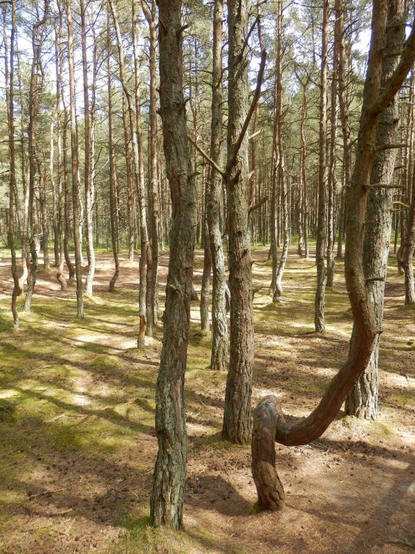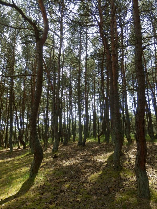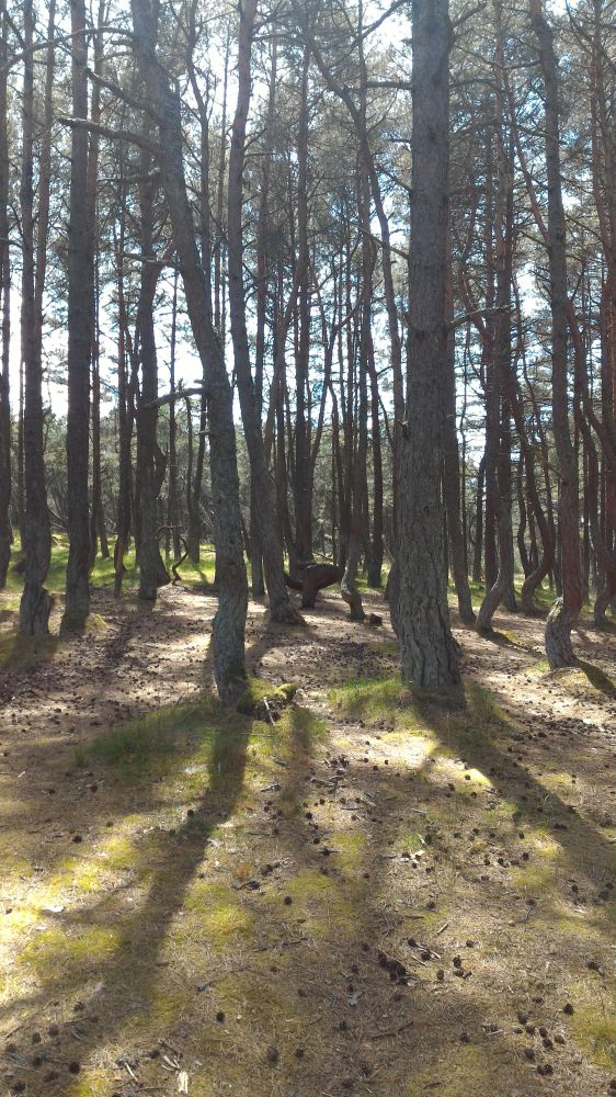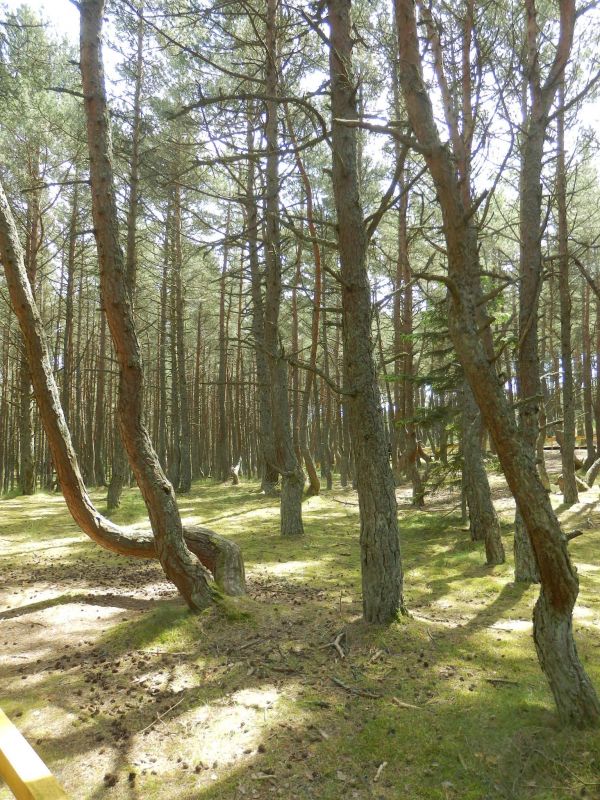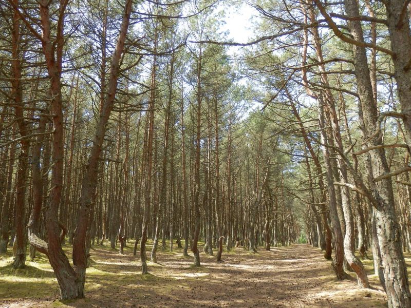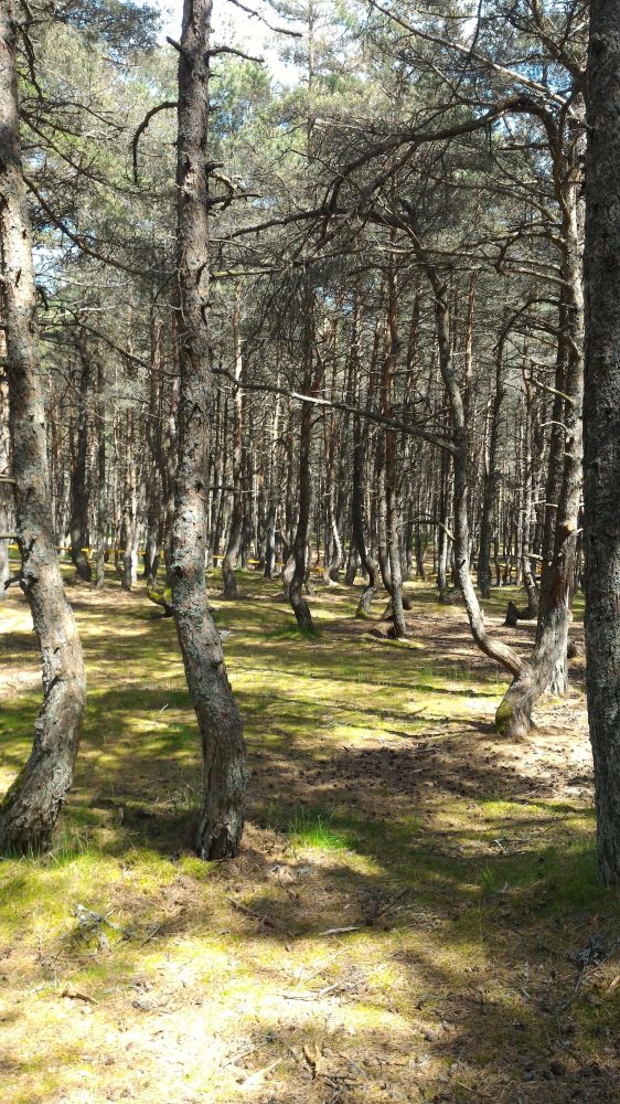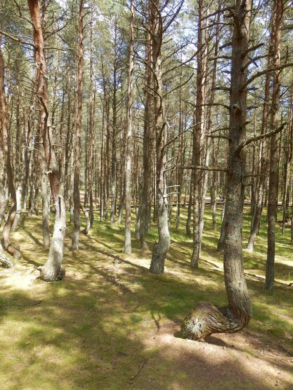 Есть на Куршской косе Балтийского моря (БМ) много интересных мест о первом читайте этот пост, а мы движемся дальше, в направлении экологической тропы «Танцующий лес». Лес чудес, танцующие или пьяные деревья. Сосны в виде восьмерок, дубы-колдуны, ветки спирали, и разные другие причудливые формы деревьев. Необычно, странно и красиво одновременно. Всё это выглядит как живая природная сказочная декорация.