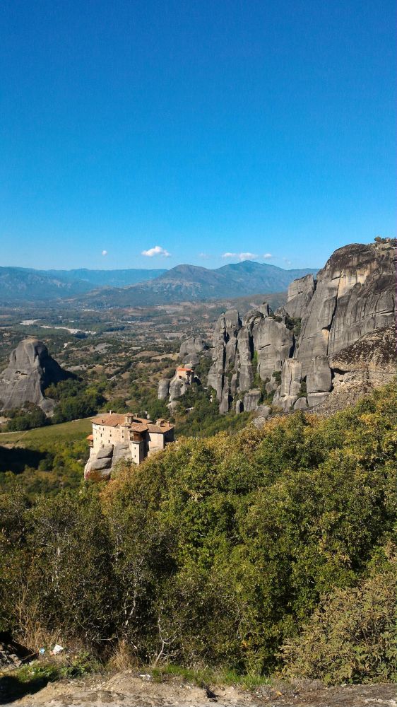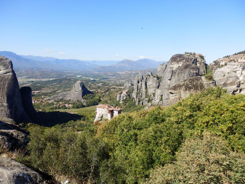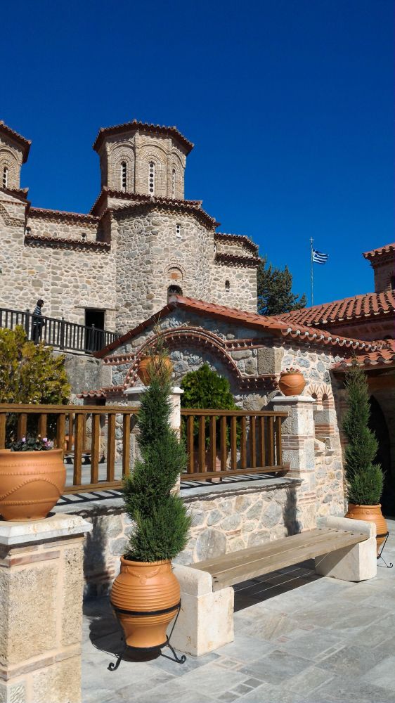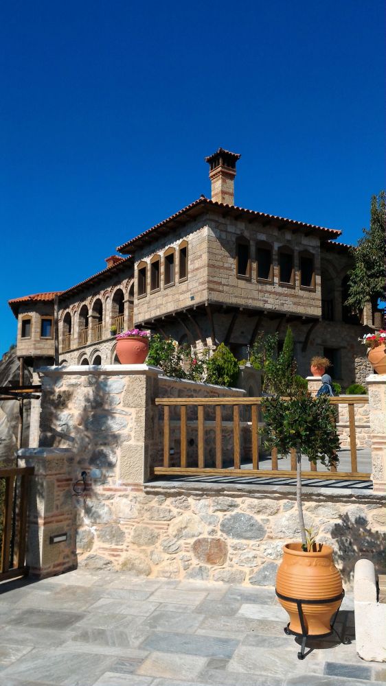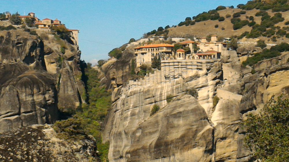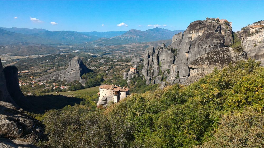 На верхушках отдельных скал расположены действующие по сей день монастыри, которые наряду с Афоном, входят в монашеское государство с собственным укладом и управлением монашеской жизнью.