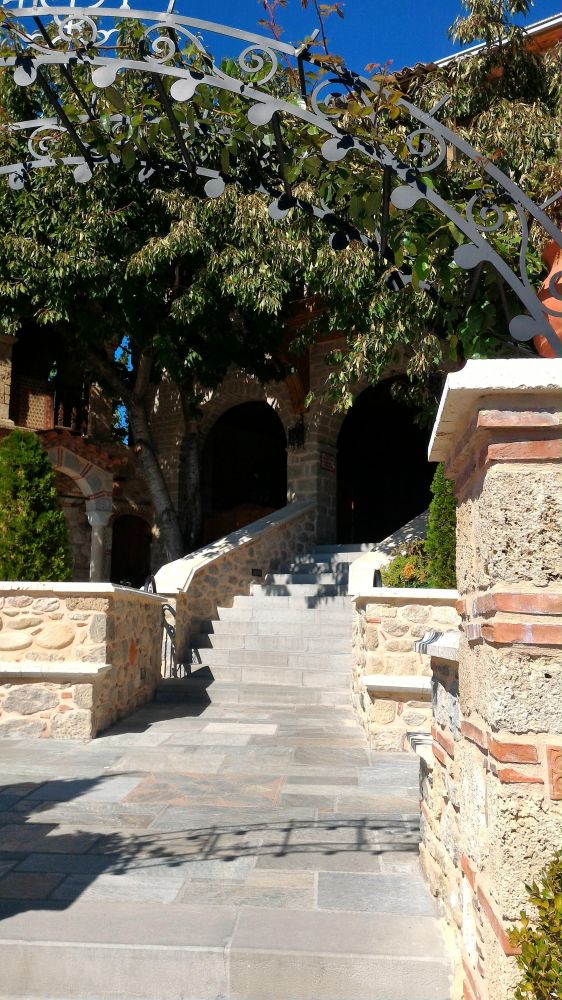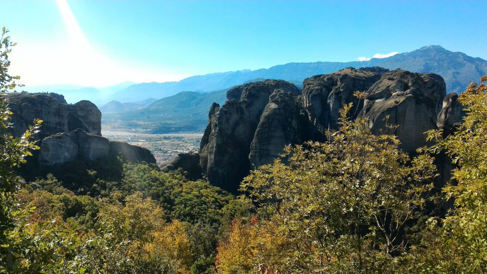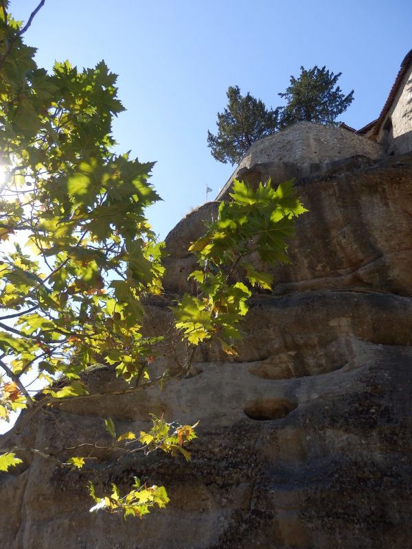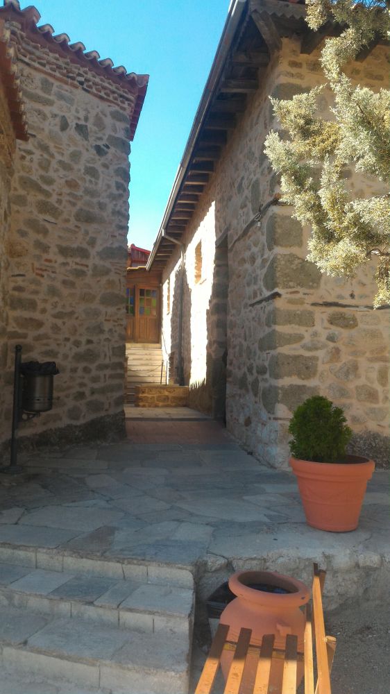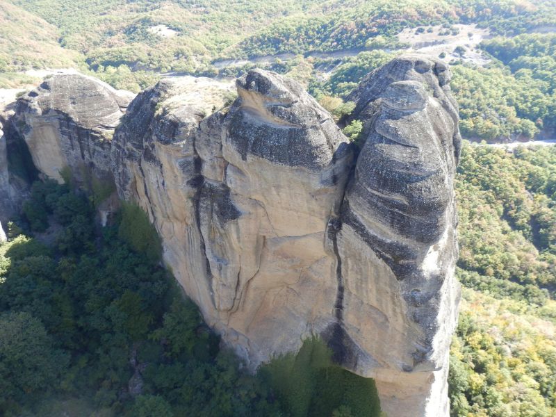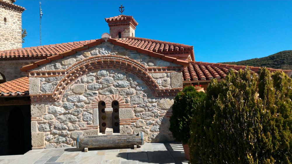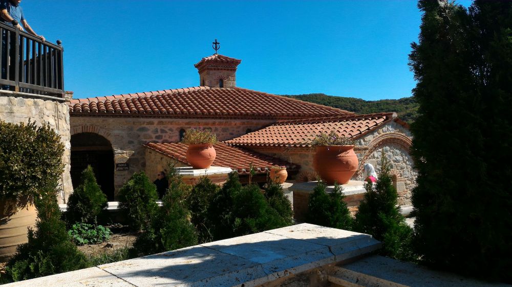 На верхушках отдельных скал расположены действующие по сей день монастыри, которые наряду с Афоном, входят в монашеское государство с собственным укладом и управлением монашеской жизнью.