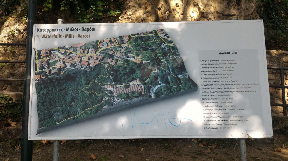 В XIV веке местность подверглась мощному землетрясению, после чего протекавшая когда-то река изменила направление русла и устремилась к обрывистым склонам, с этого момента местность приобрела множество мелких водопадов, среди больших – два мощных водопада – «Керанос» (Keranos) и чуть поодаль от него так называемый двойной.
