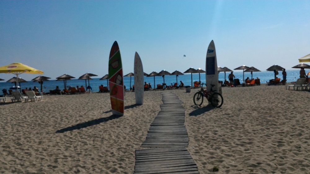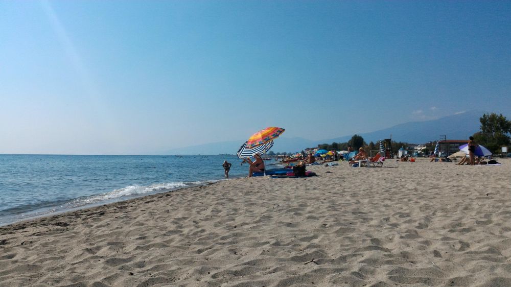 Место скорее мало известно или вообще неизвестно отдыхающим, в отличие от знаковых мест Греции, которые у многих на слуху, но которое имеет ряд своих преимуществ – это не очень большая удаленность от крупного мегаполиса и аэропорта г. Салоники, это протяженная коса песчаного пляжа, это прозрачные воды залива, это пологий удобный заход в море, это мелководье у берега постепенно набирающее глубину, соответственно прогрев быстрый и остывает медленно (как парное молоко вечером).