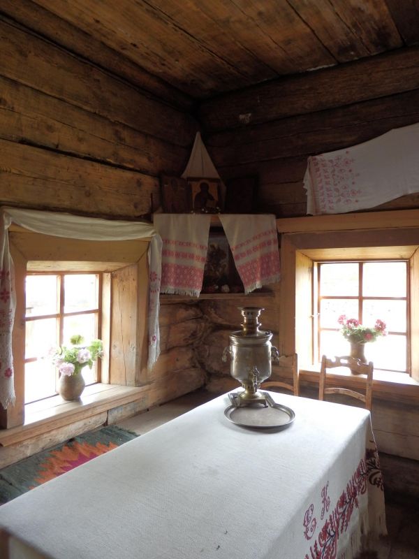 Очень интересно было воочию увидеть, что площадь таких деревенских изб-усадеб (рубленных домов) непривычно и необычайно большая, по сравнению с дворами средней полосы России. Внутренний двор усадеб имеет продуманную застройку и включает в себя чистую, получистую и скотную (т.е. основной жилой дом (избу), место для хранения всякой утвари сельскохозяйственной, запасов и т.д.). Все это выглядит единым целым пространством (учитывая, что в «…студёную зимнюю пору, … из лесу (в данном случае перефразируя, избы) вышел; был сильный мороз»), Сибирь, однако!